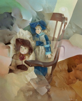 (Vitoria, Álava 1943) "Niñas en la silla " Firmado: Fiestras 78 Óleo / Lienzo 100 x 81 cm. ; 122 x 103 cm. (con marco)