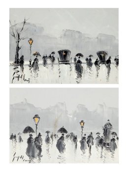 (Barcelona 1935) "Vista de París con personajes (pareja)" Firmado: Grifell. París Óleo / Lienzo 24 x 33 cm.; 36 x 45 cm. (con marco cada uno)