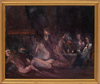 (Barcelona 1935) "Escena erótica" Firmado: Grifell Óleo / Tablex 38 x 48 cm. ; 43 x 50 cm. (con marco)