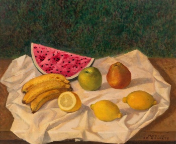 (Mediados S. XX) "Bodegón de frutas" Firmado: M. Irujo de Beruete Óleo / Lienzo 46 x 55 cm.; 58 x 67 cm. (con marco)