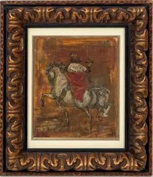 (S. XX) "Rey a caballo " Firmado: Miguel Millar Técnica Mixta / Cartón 18 x 15 cm. ; 30 x 25 cm. (con marco)