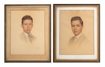 (S. XX) "Retratos de jóvenes (pareja)" Firmado: Torres Martin LVI Ceras color / Papel 56 x 42 cm.; 72 x 57 cm.; (con marco cada uno)