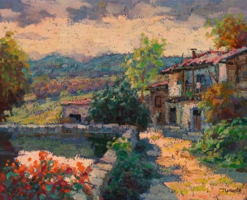 ( Amorebieta 1931) "San Vicente de la Sonsierra. Rioja Alavesa " Firmado: Uriarte Óleo / Lienzo 46 x 55 cm.; 70 x 79 cm. (con marco) Al dorso titulado y firmado.