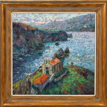 ( Amorebieta 1931) "San Juan de Gaztelugatze. Bizkaia" Firmado: Uriarte Óleo / Lienzo 72 x 72 cm.; 92 x 92 cm. (con marco) Al dorso titulado y firmado.