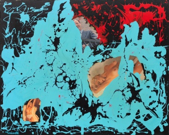 ( Amorebieta 1931) "Politica y erotismo" Firmado: Uriarte Mixta / Collage / Lienzo 65 x 81 cm. Al dorso titulado y firmado.