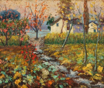 ( Amorebieta 1931) "Casa de Campo" Firmado: Uriarte Óleo / Lienzo 54 x 65 cm.; 79 x 90 cm. (con marco)