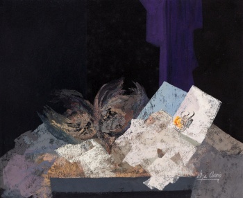 (Mérida, Badajoz 1945) "Mujer mirando por la ventana " Firmado: Vega Ossorio Óleo / Tablex 39 x 47 cm.