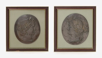 Época: S. XX Medidas: 34 x 28 cm. (medallón cada uno); 52 x 47 cm. (con marco cada uno)