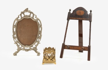 Época: Pp. S. XX y S. XX Medidas: 36 x 21 cm. (portarretratos); 39 x 21 x 16 cm. (atril); 10 x 9 x 7 cm. (centro)