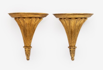 Pareja de ménsulas en madera tallada y dorada con decoración vegetal y gallones. Estilo Luis XVI.