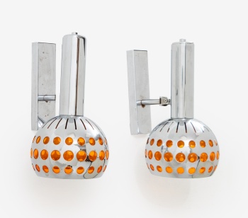 Pareja de apliques de pared en acero cromado y tulipa en plástico color caramelo. Rack.