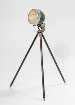 Lámpara de sobremesa con trípode en metal.