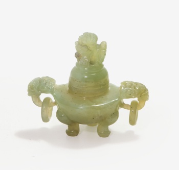 Búcaro con tapa en jade tallado representando furias.