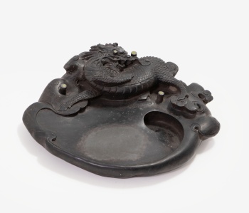 Tintero tradicional chino en piedra Duan representando dragón.