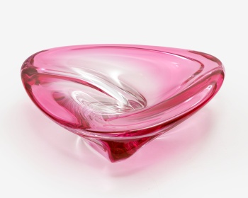 Centro en cristal en color rosa. Firmado. Vals de Lambert.