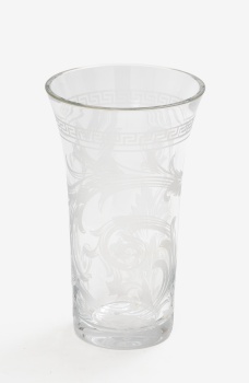 Jarrón en cristal grabado con decoración vegetal y greca neoclásica alrededor. Firmado Versace. Rosenthal