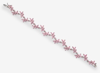 Pulsera en plata y cristales de Swarovski en tono rosa representando flores.