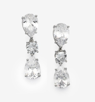 Pendientes largos en plata con cristales de Swarovski en forma de lágrima y circular.