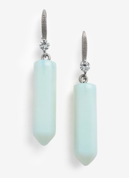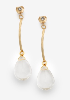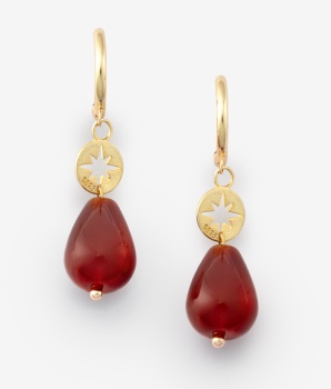 Pendientes largos en plata dorada y piedra ágata en forma de lágrima.