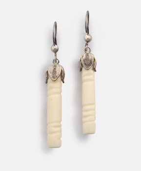 Pendientes largos en plata y cristal de Swarovski con decoración de cruz.