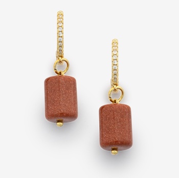 Pendientes largos en plata dorada con circonitas y piedra venturina.