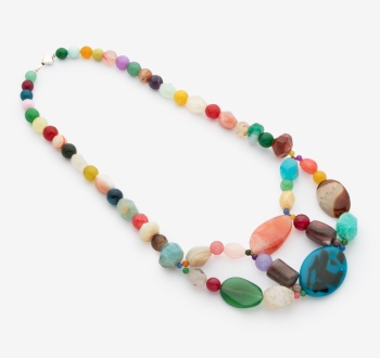 Collar largo con piedras ágatas, amatistas, cuarzos, etc. Largura: 72 cm.