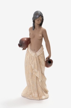 Figura en gres policromada representando "Aguadora". Sello en la base. Manufactura Lladró.