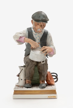 Figura en porcelana policromada representando "El estañador". Sello en la base. Manufactura Algora.