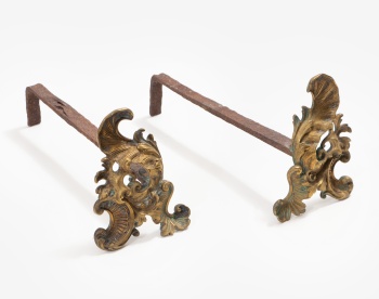 Pareja de morillos de chimenea en bronce y hierro con decoración vegetal y rocallas. Estilo Luis XV. Época Napoleón III. Francia.