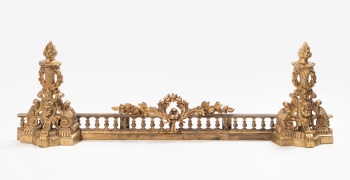 Morillos de chimenea en bronce dorado con decoración de flores, hojas, bustos de niños y piñas. Estilo Luis XVI. Época Napoleón III. Francia.