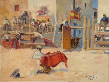 (S. XX) "Porta gayola" Firmado: Vidal 924 Óleo / Lienzo pegado a tabla 19,5 x 25 cm. ; 21,5 cm. 27,5 cm. (con marco)