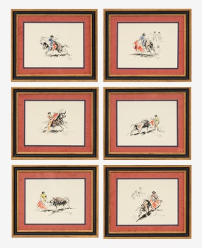 (S. XX) "Suertes del torero (6 obras)" Tinta / Color / Papel 18 x 24 cm. (cada uno); 29,5 x 35 cm. (con marco cada uno)