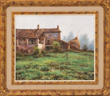 (Barcelona 1959-2018) "Paisaje rural con casa" Firmado: Sole Gonzalez Óleo / Lienzo 46 x 57 cm.; 67 x 78 cm. (con marco)