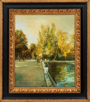 (Bilbao 1940) "Estanque, El Retiro" Firmado: R. de Basterra Óleo / Lienzo 60,5 x 70,5 cm.; 84 x 74 cm. (con marco)