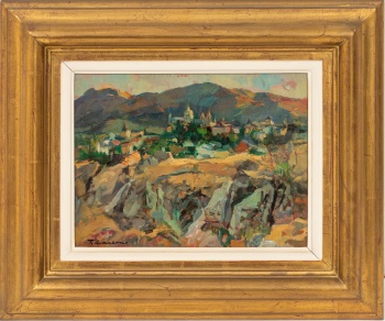 (Yeste, Albacete 1919 - Albacete 2014) "Entre Tierras " Firmado: Lozano Óleo / Lienzo pegado a tabla 39 x 44 cm. ; 58 x 64 cm. (con marco)