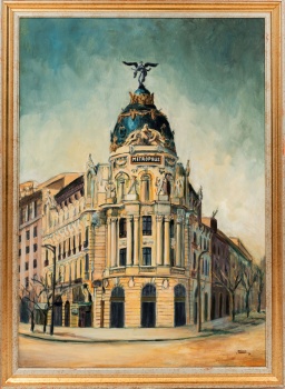 (Bilbao S. XX) "Metropolis - Madrid " Firmado: Odriozola 98 Óleo / Lienzo 92 x 65 cm. ; 101 x 74,5 (con marco)