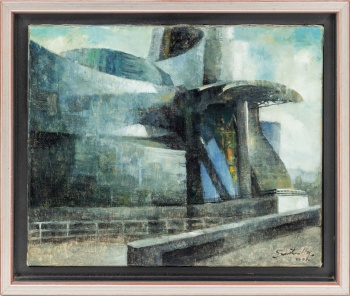 (Taiwán 1955) "Guggenheim" Firmado: Santos Hu 2007 Óleo / Lienzo 38 x 46 cm.; 47 x 54 cm. (con marco)