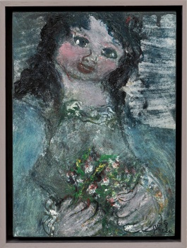 (Carranza, Vizcaya 1941) "Dama con ramillete" Firmado: Ahedo Óleo / Tabla 25 x 18 cm.; 28 x 21 cm. (con marco)