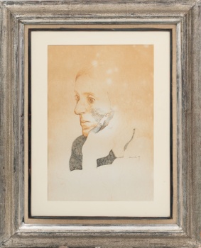(Quito, Ecuador 1963) "Dos rostros" Firmado: P. Barragán Acuarela / Tinta / Papel 49 x 65 cm.; 57 x 73 cm. (con marco)
