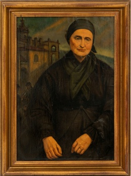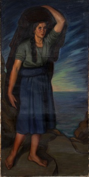 (Pp. S. XX) "Pescadora " Óleo / Lienzo 215 x 110 cm.