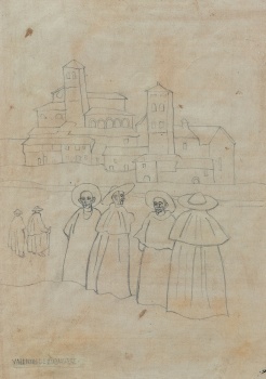 (Madrid 1879 - 1963) "Vista de Iglesia con personajes" Firmado: Valentin de Zubiaurre Dibujo / papel 49 x 34 cm.
