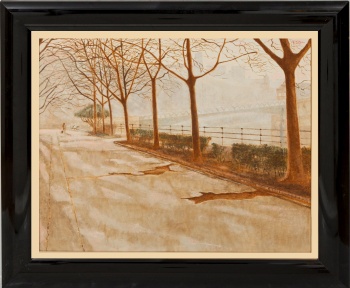 (Lesaca, Navarra 1926 - 2012) "El Llierca en invierno. Gerona" Firmado: E. Garralda Óleo / Lienzo 65 x 81 cm. ; 92 x 108 cm. (con marco) Al dorso titulado y firmado