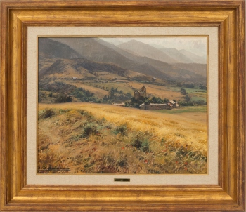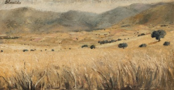 (Madrid 1922) "Paisaje seco" Firmado: B. Rementeria Óleo / Táblex 65 x 120 cm.; 82 x 146 cm. (con marco)