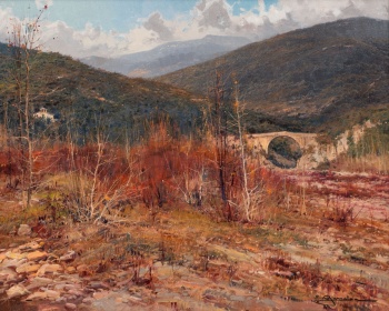 (Lesaca, Navarra 1926 - 2012) "Pedra en Cerdanya" Firmado: E. Garralda Óleo / Lienzo 50 x 61 cm. ; 75 x 85 cm. (con marco) Al dorso titulado, firmado y númerado 28.