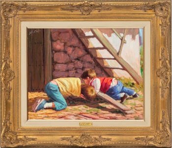 (Valencia 1933) "Niños" Firmado: José Lull Óleo / Táblex 50 x 40 cm. ; 63,5 x 73,5 cm. (con marco) Al dorso titulado, firmado y fechado 1986