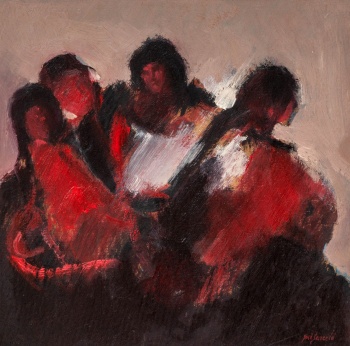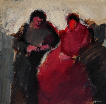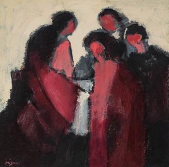 (Cartagena, Murcia 1923 - Bilbao 2001) "Mujeres" Firmado: José Barceló Óleo / Tabla 23 x 23 cm. ; 42 x 42 cm. (con marco)