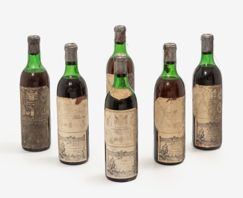 Lote compuesto por 6 botellas de vino tinto Herederos de Marqués de Riscal. Año 1961 y 1969. Elciego. Álava.