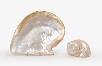 Medidas: 21,5 x 17 cm. (concha); 6 x 10,5 x 7 cm. (caracola)