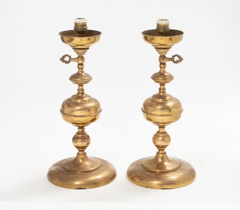 Pareja de lámparas de sobremesa en latón. Estilo Regencia.