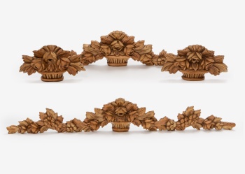 Conjunto de 4 relieves en madera pintada representando jarrones con flores y hojas. Estilo Luis XVI.